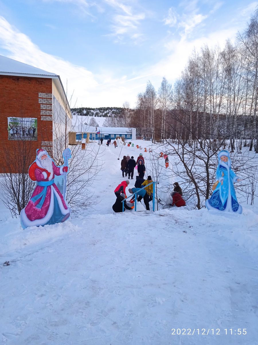 Мәктәбебез территориясенә яңа ел символы Йомшак Куян сыннары, яшел чыршылар һәм җәнлекләр белән бизәлде. Иң түрдә - 2023нче ел, Россиядә Укытучы һәм остаз елы символы булырлык, ачык китап белән каләм тора.