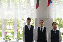 Мәктәп тормышында актив катнашканнары очен дәуләт флагларын кутәру хокукына 7 класстан Мухаметшина Алсу, 9 класстан Самигуллина Зарина лаек булды.