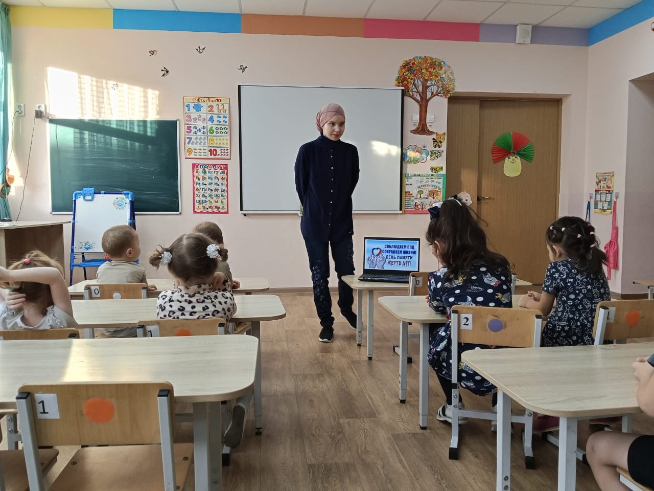 Дүшәмбе көнне мәктәпкәчә төркемдә Бөтендөнья юл-транспорт һәлакәте корбаннарын искә алу көне узды. Балалар "Дөньяда иң яхшы җәяүле" викторинасында катнаштылар, шулай ук "Машина ничек тормозлый" дигән эксперимент үткәрделәр. Чара азагында бу кайгылы датага багышланган уртак плакат булдырылды. -