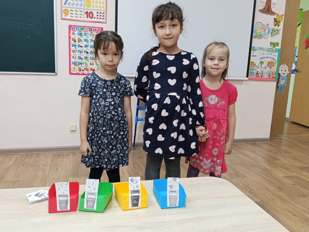 15 ноября отмечается «Всемирный день переработки вторичного сырья». В дошкольной группе воспитательница Галиахметова Д.Р. провела экологический день, в ходе которого с воспитанниками поговорили о проблемах загрязнения окружающей среды, обсудили, как важно сортировать мусор.Проведена беседа «Что такое мусор, откуда он берётся»; поиграли в дидактическую игру «Сортируем мусор»./