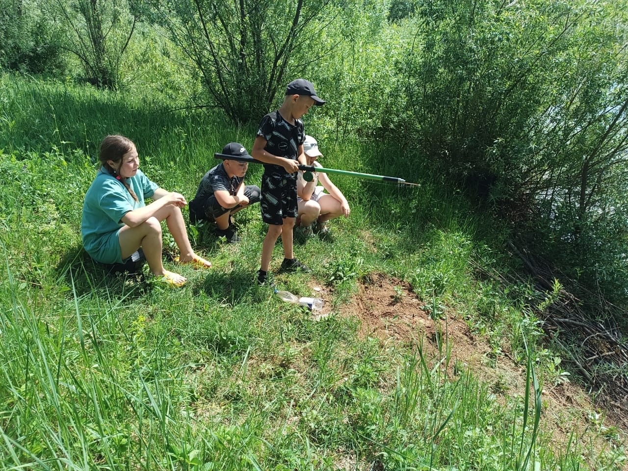 Шестнадцатый день пришкольного лагеря начался с приема детей, инструктажа по технике безопасности и энергичной зарядки. После завтрака посмотрели мультфильмы. Затем сходили на экскурсию к роднику. Мальчики увлеченно ловили рыбу, девочки собирали цветы в букеты. После обеда повторили художественные номера к закрытию лагеря. Перед расставанием поиграли в подвижные игры/ Мәктәп яны лагереның уналтынчы көне балаларны кабул итү, куркынычсызлык техникасы һәм энергияле зарядка буенча инструктаж белән башланды. Иртәнге аштан соң мультфильмнар карадык. Аннары чишмәгә экскурсиягә киттек. Малайлар балык тотарга ярата, кызлар чәчәкләрне чәчәк бәйләмнәренә җыйдылар. Төшке аштан соң лагерь ябылуга сәнгать номерлары кабатланды. Аерылыр алдыннан хәрәкәтле уеннар уйнадык.