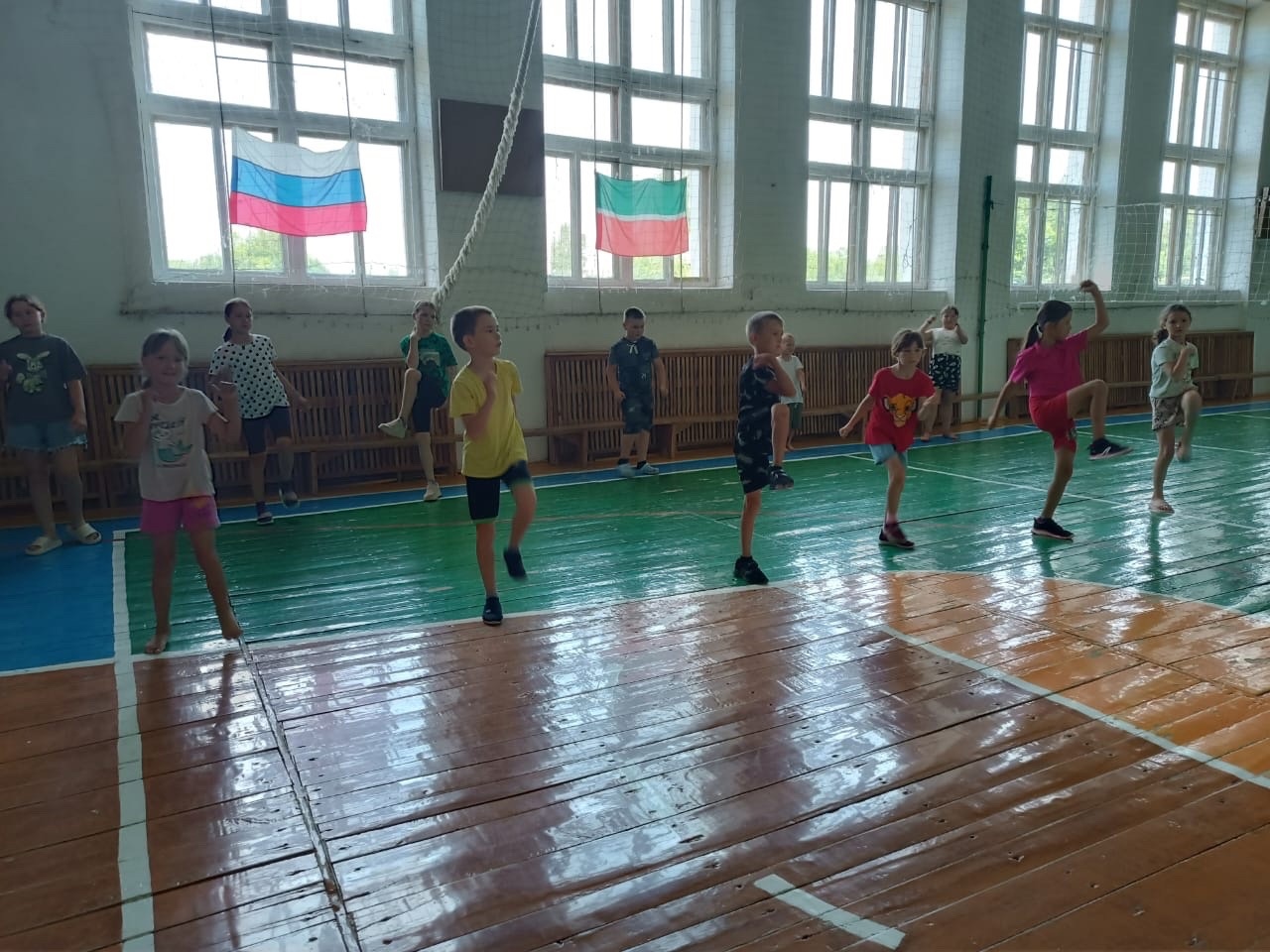 Сегодня у нас одиннадцатый день пришкольного лагеря. Всё идёт по плану, как обычно бодрящая зарядка, которая отогнала последние следы сна. После завтрака собрались в игровой, где познакомились с национальными играми и забавами народов Республики Татарстан. Затем провели праздник "Сабантуй". Ребята с удовольствием приняли участие в проводимых конкурсах. Затем провели мероприятие "Родина малая, славная самая". Ребята узнали много нового и сами показали хорошие знания, отвечая на вопросы. Завершился наш день играми на свежем воздухе и организованным уходом домой после итогов дня./ Бүген бездә мәктәп яны лагереның унберенче көне. Барысы да план буенча бара, гадәттәгечә, йокының соңгы эзләрен куып чыгарган күтәренке зарядка. Иртәнге аштан соң уен бүлмәсенә җыелдык, анда Татарстан Республикасы халыкларының милли уеннары һәм күңел ачулары белән таныштык. Аннары "Сабантуй" бәйрәме үткәрелде. Балалар конкурсларда бик теләп катнаштылар. Аннары "Кече, данлы туган ил" чарасы уздырылды. Балалар күп яңалыклар белделәр һәм үзләре дә сорауларга җавап биреп яхшы белемнәр күрсәттеләр. Безнең көн ачык һавада уеннар һәм көн йомгакларыннан соң оешкан рәвештә өйгә кайту белән тәмамланды.