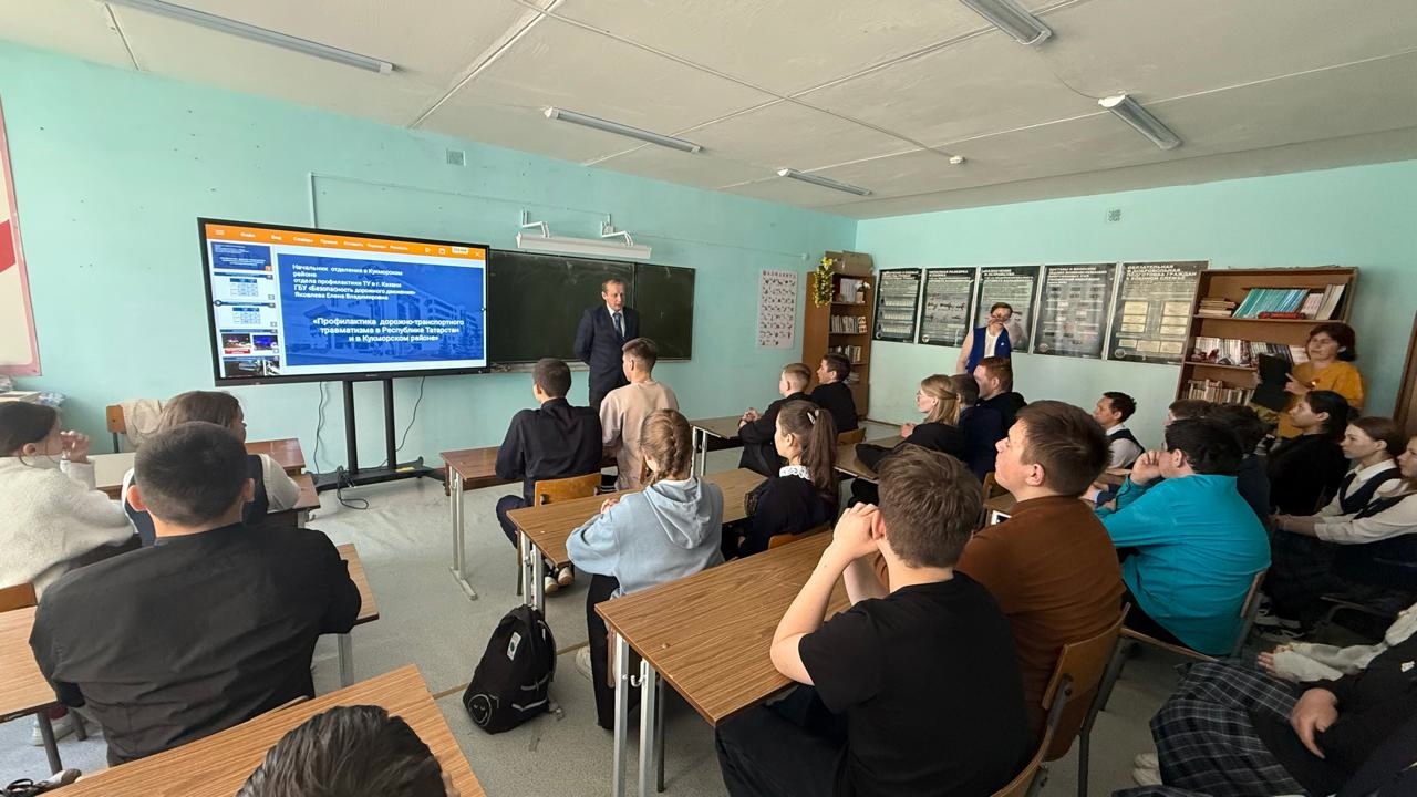 2025 елның 29 апрелендә безнең мәктәптә "Юл-транспорт травматизмын профилактикалау һәм индивидуаль мобильлек чараларын куллану" дигән темага гомуммәктәп ата - аналар җыелышы булды. Анда электр самокатлары, мопедлар, питбайклар, квадроцикллар һәм гироскутерлар кебек индивидуаль мобильлек чараларын кулланучы балаларның куркынычсызлыгы мәсьәләсе күтәрелде. «Юл хәрәкәте иминлеге» ДБУнең Казан шәһәрендәге территориаль идарәсенең профилактика бүлегенең Кукмара районындагы бүлек начальнигы Елена Владимировна Яковлева да катнашты. Ул 1-11 сыйныф укучылары, шулай ук ата-аналар белән очрашты һәм юл хәрәкәте кагыйдәләре турында профилактик әңгәмә үткәрде.