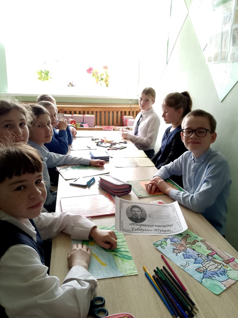 «Туган тел атналыгы», Габдулла Тукайның иҗади мирасы кысаларында китапханәче Раимова Т. Н. һәм туган тел укытучылары Федорова Р. Г., Богданова Л. А. китапханәдә 5,6 сыйныф укучылары белән язучының биографиясе белән таныштылар, әсәрләр укыдылар һәм викторина сорауларына җавап бирделәр.