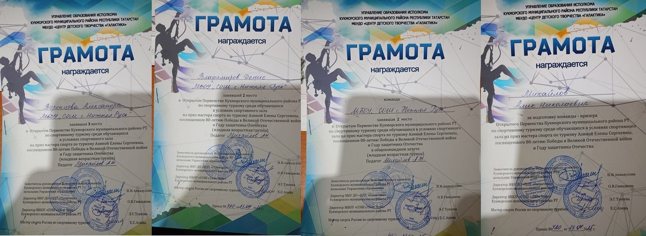 23 апреля 2025 года Открытое Первенство Кукморского муниципального района РТ по спортивному туризму среди обучающихся в условиях спортивного зала на приз мастера спорта по туризму Азиной Елены Сергеевны, посвященное 80-летию Победы в Великой Отечественной войне и Году защитника Отечества на базе «СОШ с.Село Чура». Учащиеся нашей школы под руководством учителя физкультуры Михайлова А.Н. приняли участие в данном мероприятии и заняли призовые места.
