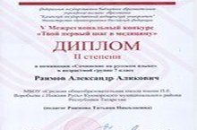 7 нче сыйныф укучысы Раимов Александр "медицинада синең беренче адымың" Республика конкурсында "инша" номинациясендә 2 нче дәрәҗә дипломга ия булды.