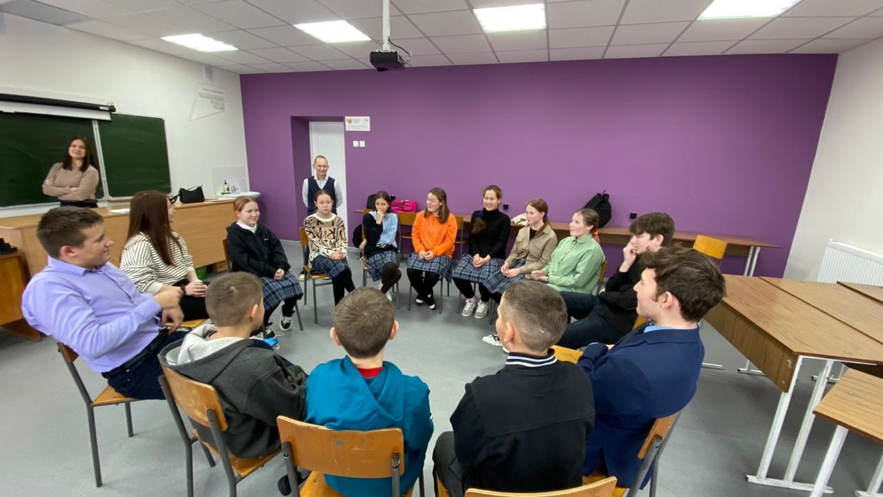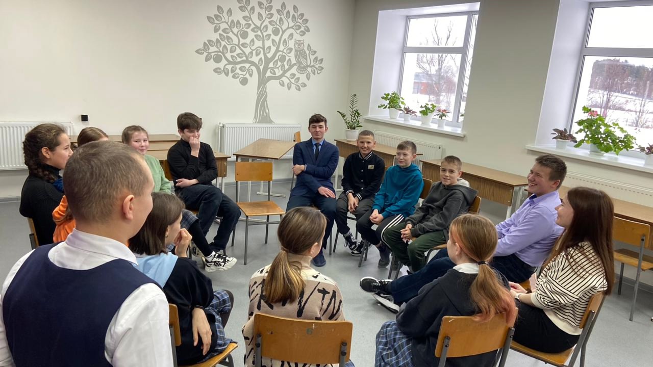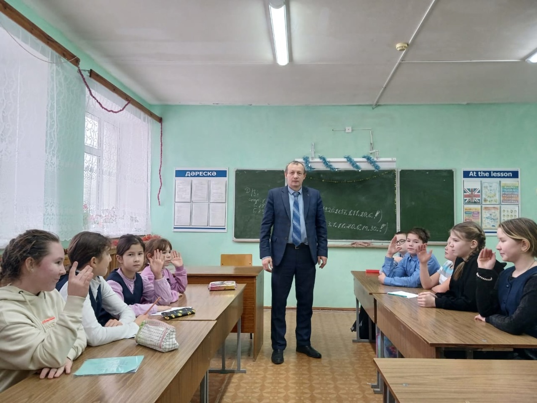 12 декабря 2024 года в нашей школе инспектор по делам несовершеннолетних ОМВД России по Кукморскому району, старший лейтенант полиции Хабибуллии Фанис Фаилевич совместно с главным специалистом по профилактике семейного неблагополучия и правонарушений среди несовершеннолетних Сабирзяновой Г.М. провели профилактическую беседу с учащимися школы./ 2024 елның 12 декабрендә безнең мәктәптә Россия Эчке эшләр министрлыгының Кукмара районы бүлегенең балигъ булмаганнар эшләре буенча инспекторы, полиция өлкән лейтенанты Хәбибуллия Фәнис Фаил улы балигъ булмаганнар арасында гаилә иминсезлеген һәм хокук бозуларны профилактикалау буенча баш белгеч Сабирҗанова Г.М. белән берлектә мәктәп укучылары белән профилактик әңгәмә үткәрделәр.