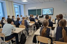 Советник директора по воспитанию и взаимодействию с детскими общественными объединениями Кузьмина М.В. провела для учеников 5 класса интерактивную лекцию-беседу. В начале встречи школьники погрузились в хроники великой битвы.