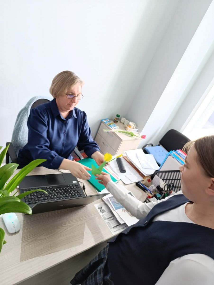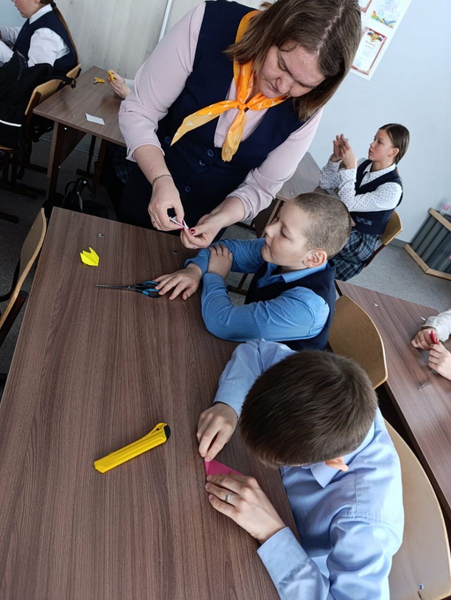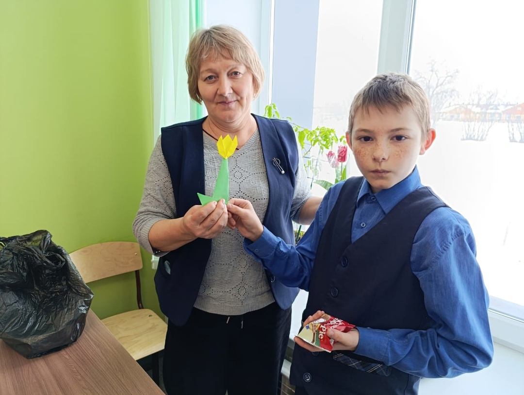 Опубликовано: 12.03.2025"Тюльпан на 8 марта" мастер класс в технике оригами.Учащиеся 6 класса под руководством советника директора по воспитанию Ивановой О. А. изготовили тюльпаны из цветной бумаги с помощью техники оригами. Изготовленные тюльпаны, учащиеся подарили женщинам-учителям, своим мамам.