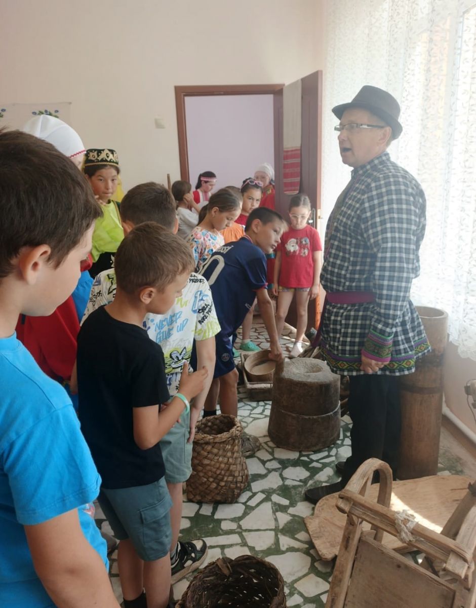 Опубликовано: 10.06.2025День 10. Сегодня в нашем пришкольном лагере - день прошлого. Где можно увидеть день прошлого? Конечно, в музее. Посетили сегодня музей в доме культуры с. Нырья. Там очень много предметов прошлого. Дети сами попробовали молоть зерно, прясть, разучивали игры и пляски под гармонь. Спасибо руководителю дома культуры, он рассказал много интересного о жизни нашего народа. Дети с удовольствием слушали, задавали вопросы.