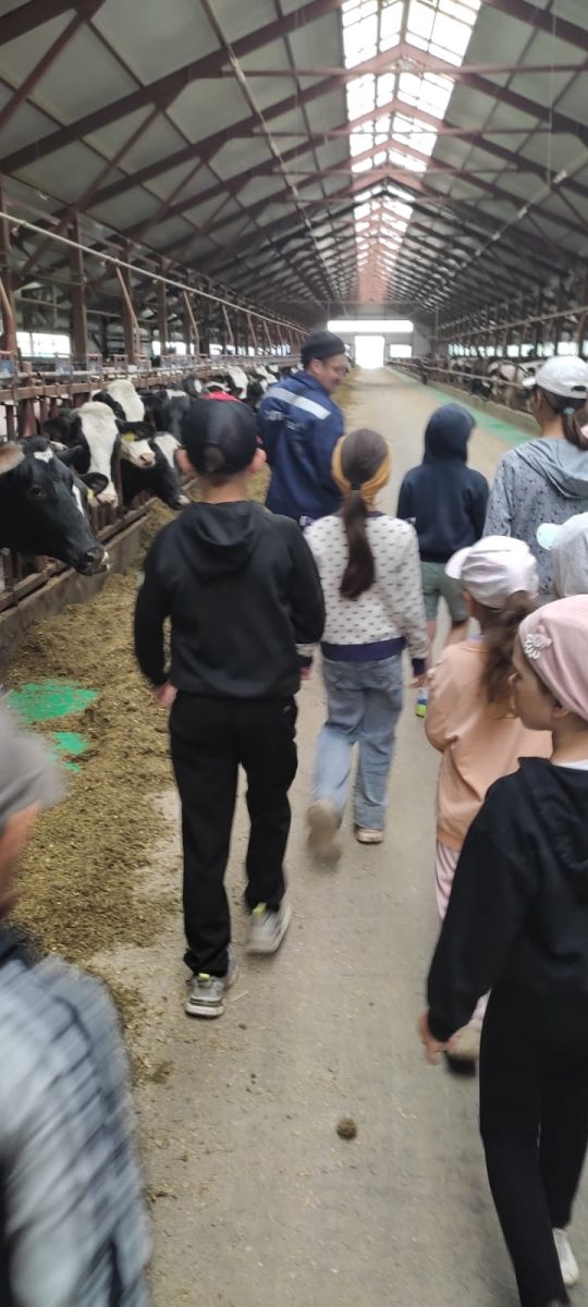 Опубликовано: 14.06.2025День 14. День профессий. Сегодняшнее утро началось с поездки на мегаферму агрофирмы "Рассвет". Здесь нас встретил зоотехник. На этой молочной ферме стоят 2000 коров. Дети увидели как и чем кормят коров, откуда пьют воду. Узнали, почему все коровы с короткими хвостами и без рогов. Видели, как коровы подходят к чесальному аппарату, как убирается навоз. Затем пришли в отдел, где доят. К сожалению, здесь коров не было, не подошло время. Зоотехник рассказал весь процесс доения. В родильном отделе ветеринар ставил уколы коровам. Новорождённые телята спали. Детям было всё интересно, задавали бесконечные вопросы. Здесь везде чисто, всё автоматизировано и компьютеризировано. На ферме мы узнали о таких профессиях, как зоотехник, лаборант, ветеринар, оператор, рабочий, который ухаживает за молодняком, оператор машинного доения (доярка), механизатор, бухгалтер, экономист. Благодаря таким коротким путешествиям на производство, ребята узнают о том, как устроено современное сельскохозяйственное предприятие, какие профессии востребованы и как организованы рабочие места. После обеда познакомились с профессиями: продавец, повар, кухонный работник, охранник, воспитатель, тренер, учитель.
