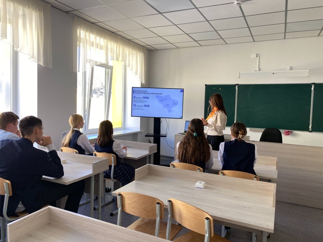 Опубликовано: 30.09.2025В рамках Дня воссоединения Донецкой Народной Республики, Луганской Народной Республики, Запорожской области и Херсонской области с Российской Федерацией, в нашей школе состоялся классный час, посвящённый теме «Возвращение в состав России: сила единства». Лекцию провела советник директора по воспитанию и взаимодействию с детскими общественными организациями Кузьмина М.В., которая смогла глубоко и доступно осветить исторические и культурные аспекты данного события. Учащиеся 10 и 11 классов с интересом слушали выступление, в котором рассматривались не только факты и события, но и важность единства и сплочённости народов. Советник директора поделилась с учениками материалами, иллюстрирующими исторический контекст воссоединения, а также акцентировала внимание на значимости культурных связей и общего будущего. В ходе обсуждения ребята задавали вопросы, активно участвовали в диалоге, что способствовало формированию их гражданской позиции и пониманию значимости исторических процессов. Такое мероприятие стало важной вехой в образовательном процессе, помогая молодому поколению лучше понять свою страну и её историю, а также осознать свою роль в будущем России.