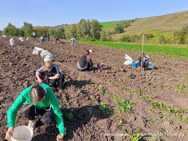 Опубликовано: 16.09.2025Волонтеры, учащиеся 8 класса совместно с классным руководителем Александровой И. В. оказали помощь семье участника СВО в уборке картофеля.