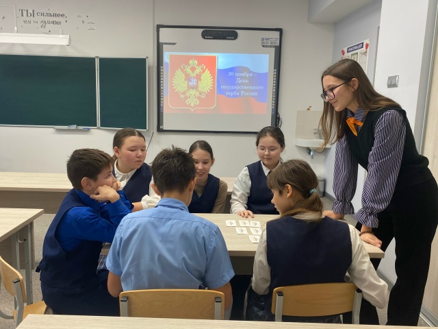 Опубликовано: 01.12.202530 ноября — День Государственного герба Российской Федерации. Государственный герб — это не просто официальный символ, а многовековой знак достоинства, преемственности и суверенитета нашей страны. В его двуглавом орле, скипетре и державе отражена вся мощь и сложная, славная история России. В честь этого важного дня советник директора по воспитанию и взаимодействию с детскими общественными организациями Кузьмина М.В. провела для учеников 5 «Б» класса увлекательную настольную игру «История российского герба». Ребята с большим интересом погрузились в игру, где каждый ход открывал для них новые страницы истории: как менялся герб от эпохи к эпохе, что символизирует каждая его деталь и как он стал тем узнаваемым знаком, который мы видим сегодня. Мероприятие помогло школьникам не только расширить кругозор о государственной символике, но и глубже понять её значение. Через игру у ребят воспитывается уважительное отношение к официальным символам России, а вместе с ними — к истории своей страны и своего народа..