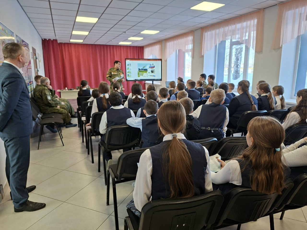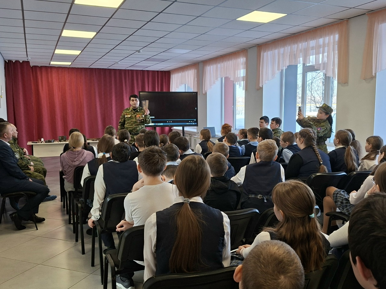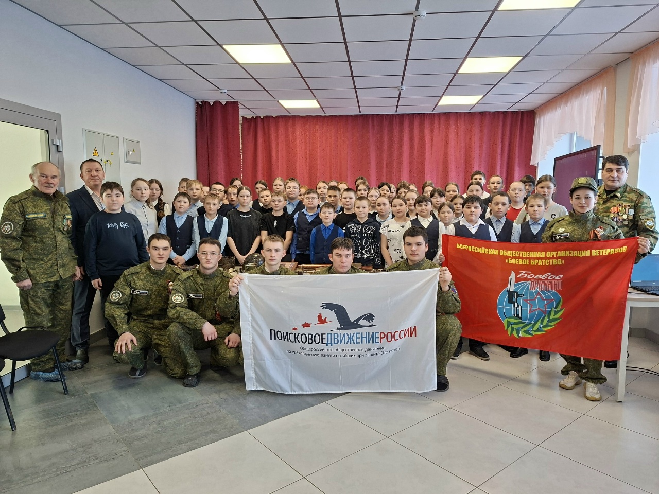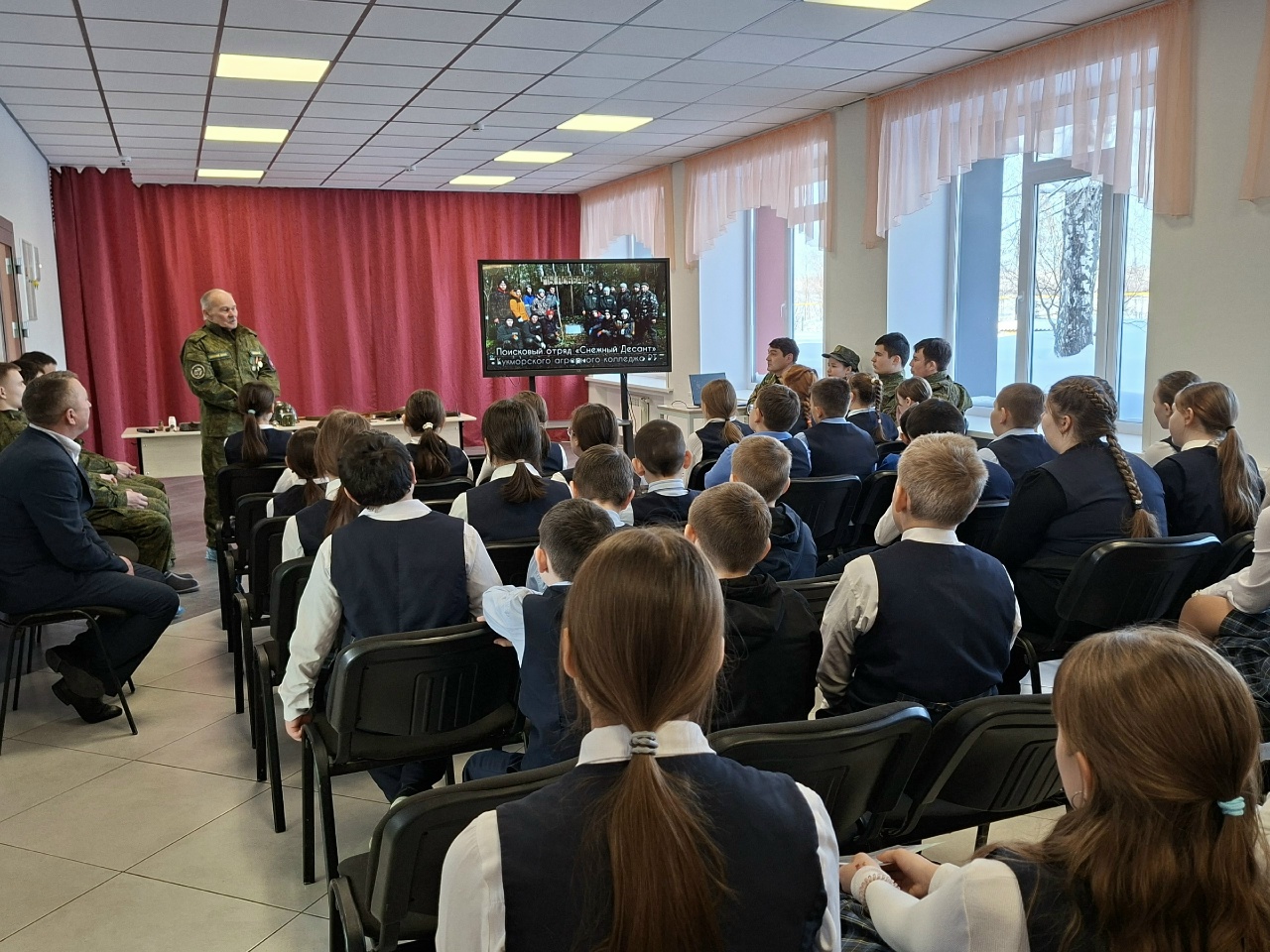 Опубликовано: 09.02.2026Профориентационная работа — это комплексная система мер, которая направлена на подготовку учащихся к осознанному выбору профессии с учётом их индивидуальных особенностей и потребностей общества. Это процесс, который начинается с младших классов и продолжается до окончания школы. 9 февраля 2026 года ветераном боевых действий и командиром поискового отряда «Снежный десант» Кукмор Самигуллиным Р. Х. (Кукморский аграрный колледж) был проведён «урок мужества». В мероприятии участвовали ветеран-поисковик, бывший командир поискового отряда «Снежный десант» Шакиров Р. Н. и поисковики отряда. Они привезли с собой учебный фильм об экспедиции и выставку экспонатов с мест, где проходили поисковые работы.