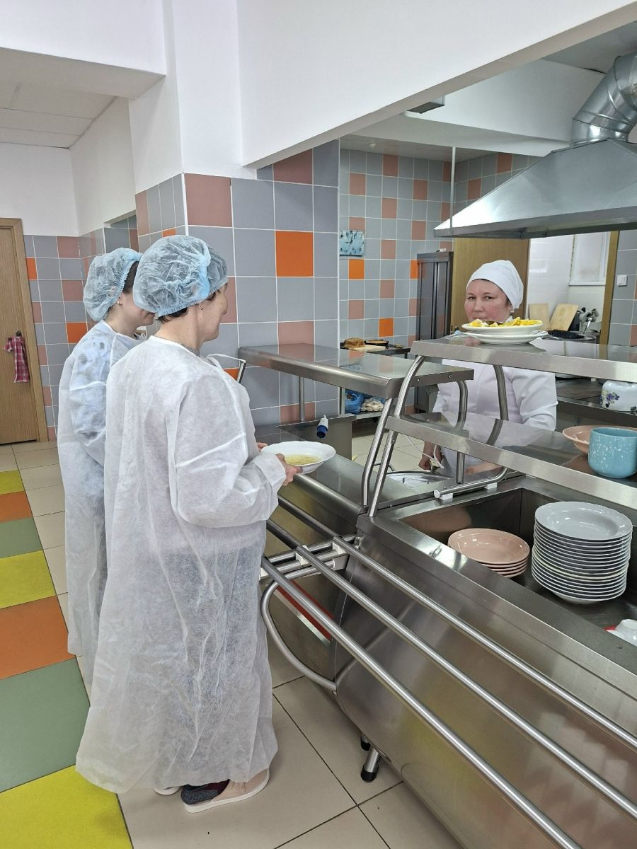 Опубликовано: 03.03.2026Сегодня родительский комитет 5А класса посетили школьную столовую. В ходе контроля родители проверили соответствие приготовленных блюд утверждённому меню, санитарное состояние обеденного зала, график питания обучающихся. Родителями было отмечено, что рацион питания соответствует меню.