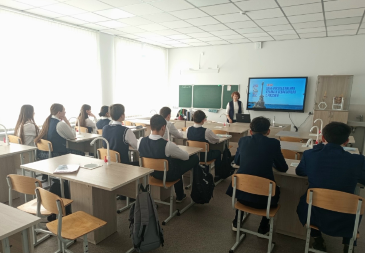 Опубликовано: 18.03.202618 марта — День воссоединения Крыма с Россией! С учащимися 8-11 классов была проведена познавательная беседа на тему «Наш Крым. Наша Россия». В ходе беседы посмотрели видеосюжет о красивом и уникальном полуострове Крым, его природе, городах и достопримечательностях. Особое внимание было уделено городу Севастополю — городу-герою, известному своей историей, мужеством и подвигами защитников. Ребятам напомнили, что Крым в 2014 году присоединился к России, и теперь Республика Крым и город Севастополь являются частью Российской Федерации. Поговорили о дружбе народов, о том, что жители Крыма вместе с Россией строят общее будущее. Этот день напоминает нам о важности единства и взаимопонимания. Пусть наша страна всегда остается сильной и единой!