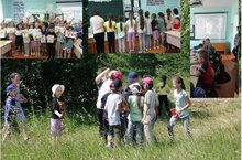 Новый день в лагере начался с утренней зарядки под музыку. Позавтракав, вожатые провели минутку здоровья на тему «Книги о здоровье» и проинструктировали детей перед экскурсией. Сегодняшний день в нашем оздоровительном лагере "Солнышко" был посвящен "Дню Сказки". Дети вместе с педагогами совершили увлекательное путешествие в сказочный мир природы, участвуя в игре-путешествии "По дорогам любимых сказок". Во время экскурсии дети рассматривали разные растения и вспоминали, в каких сказках они встречаются. Увидели также много птиц, насекомых. Побывали у пруда, увидев там рыбаков, дети вспомнили сказку о рыбаке и рыбке, рассказывали ее наизусть. По дороге дети угадывали сказки по её началу, отвечали на вопросы о разных персонажах, определяли, из какой сказки та или иная вещь и чья она, угадывали героев сказок по описанию их внешнего вида, отгадывали загадки. На привале инсценировали любимые сказки, которые сопровождались весёлыми аплодисментами. Погода была сказочно красива. Дети получили заряд бодрости и хорошее настроение. Завершился день в лагере иллюстрированием любимых сказок.