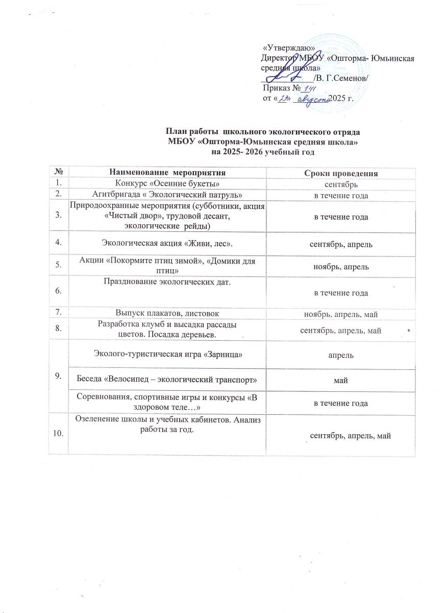 План работы отряда "Юный эколог"