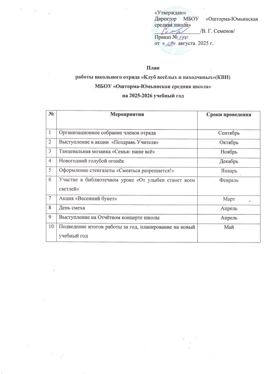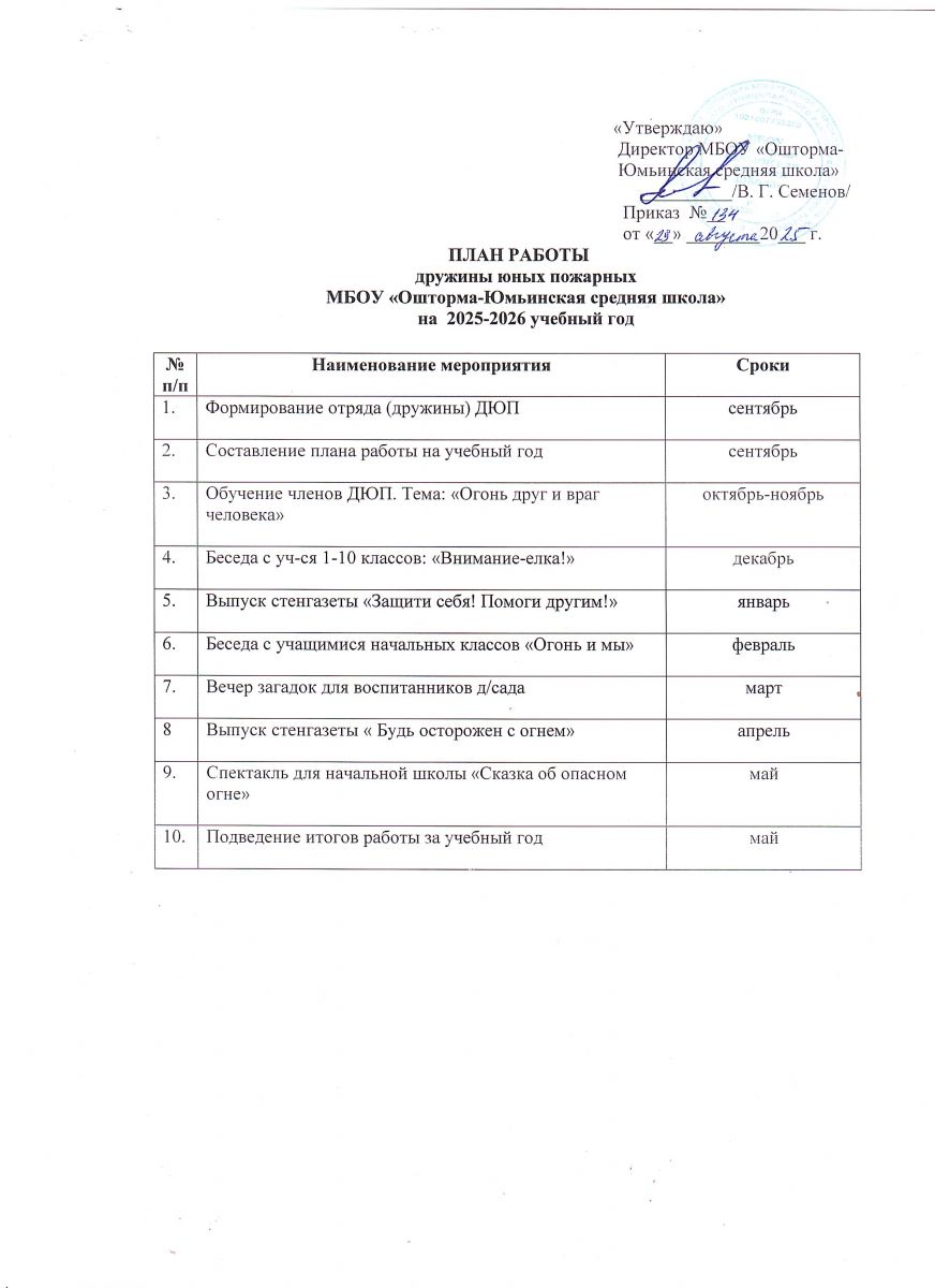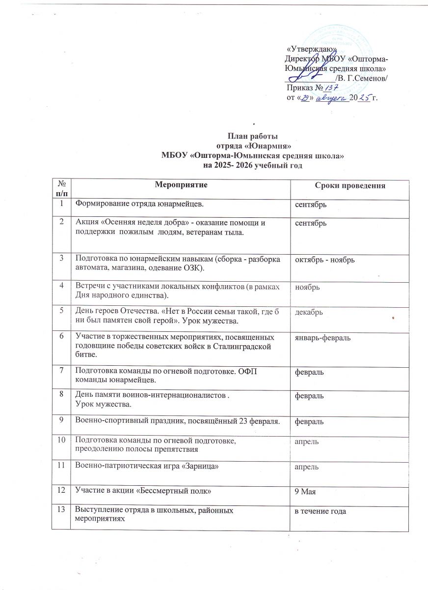 План работы юнармейского отряда "Патриот"