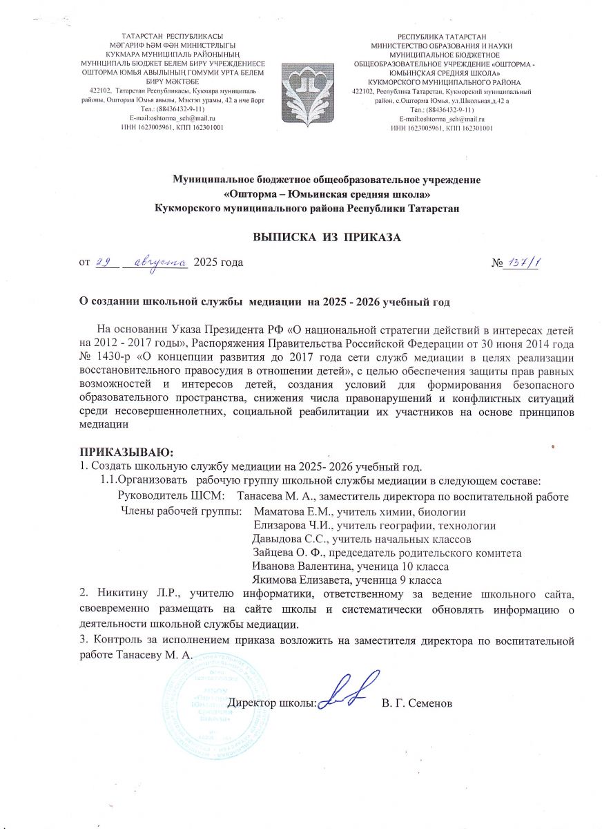 Приказ школьной службы медиации