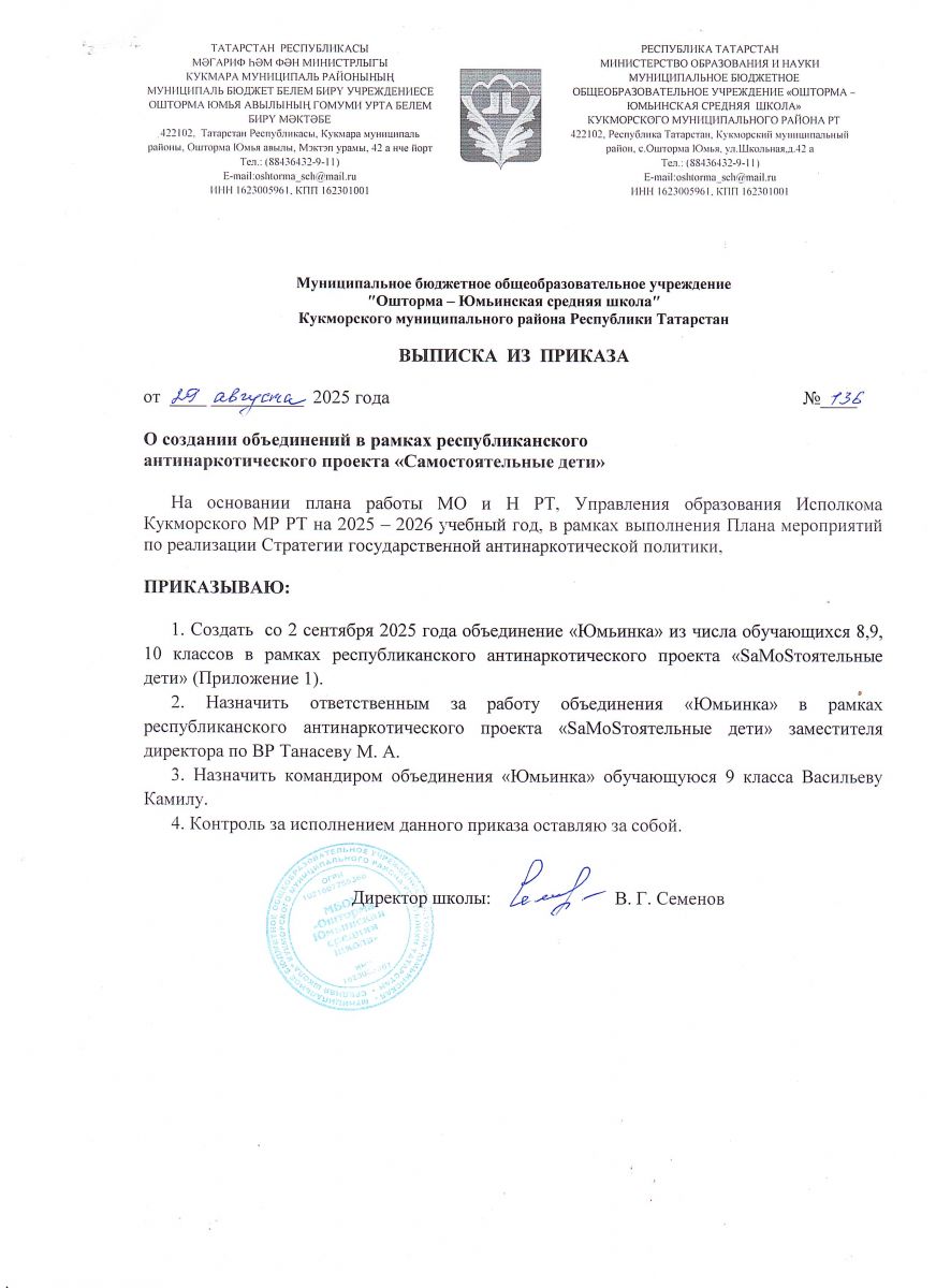 | Адрес: | 422102 Республика Татарстан Кукморский муниципальный район c. Ошторма Юмья, ул. Школьная 42а |