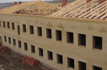 Төзүчеләр бар көчләренә тырыша, яңа мәктәпкә түбә кора. Димәк,1 сентябрьне яңа мәктәптә каршылаячакбыз.
