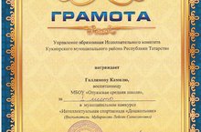 Район күләмендә уздырылган " Интелектуальная спартакиада "Дошкольник" бәйгесендә катшашып, Галлямова Камиля I дәрәҗә грамота белән бүләкләнде.