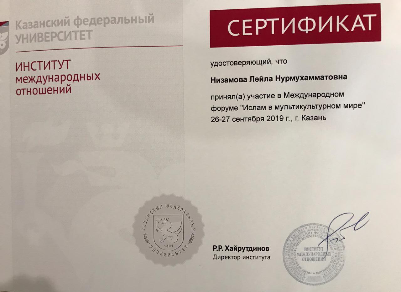5. Низамова Л.Н.- Международный форум «Ислам в мультикультурном мире»;
