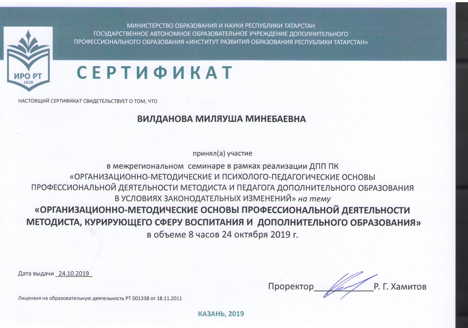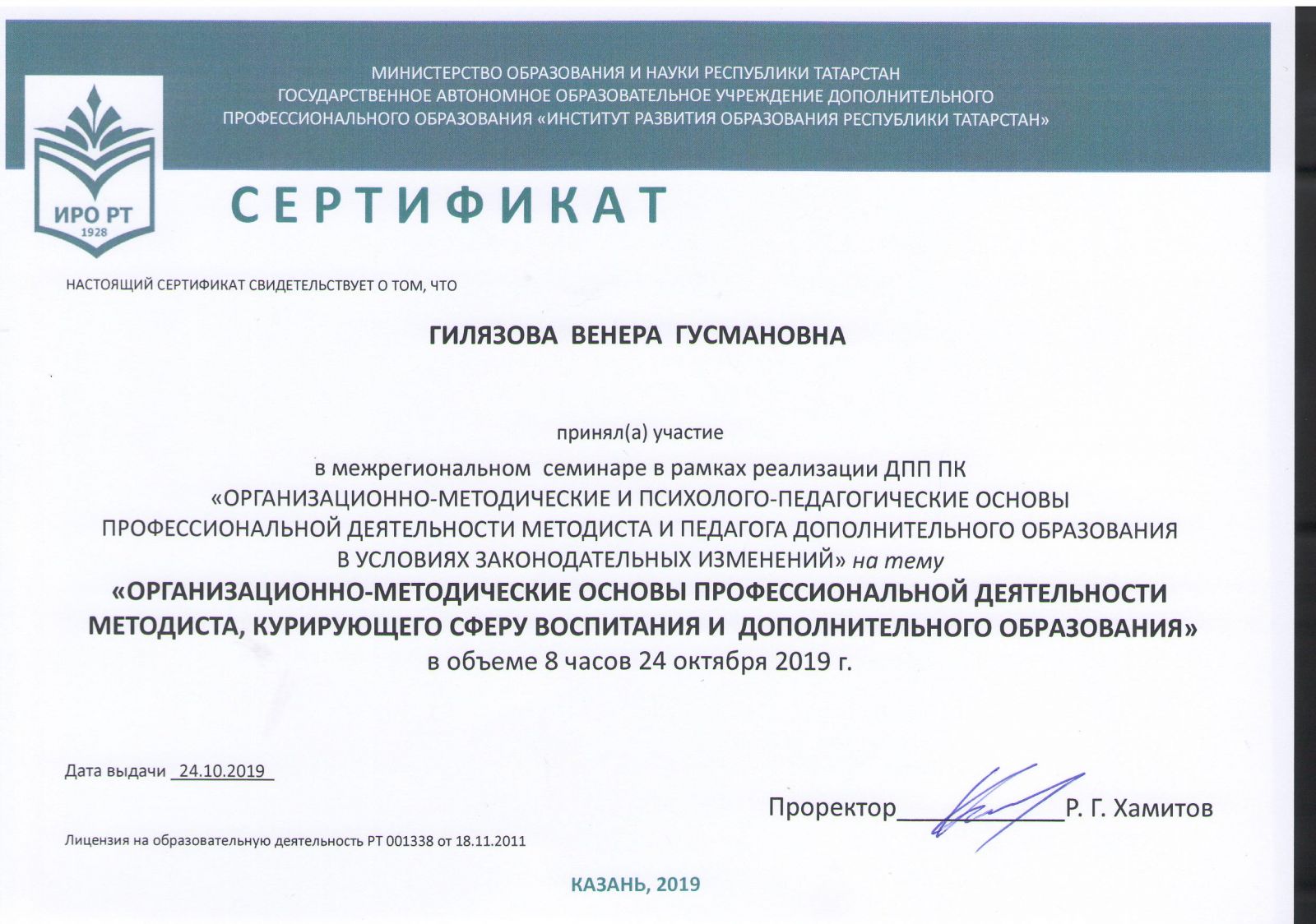 - Гилязова В.Г.- Участие в Республиканской стажировке «Организационно- методические основы профессиональной деятельности методиста, курирующего сферу дополнительного образования»;