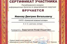 30 ноября 2021 года был проведен Республиканский конкурс информационных буклетов по предупреждению коррупции среди студентов профессиональных образовательных организаций Республики Татарстан.Конкурс проходил в дистанционном формате. Были присланы информационные буклеты по предупреждению коррупции.