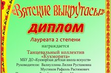 Хореографический коллектив "Кукморята" Кукморской детской школы искусств, под руководством Валиуллиной Лилии Рустамовны, стал обладателем диплома Лауреата 2 степени. Поздравляем наших маленьких победителей и желаем им дальнейшего творческого процветания. / Кукмара балалар сәнгать мәктәбенең "Кукмара" хореография коллективы, Вәлиуллина Лилия Рөстәм кызы җитәкчелегендә, 2нче дәрәҗә лауреат дипломына ия булды. Кечкенә җиңүчеләрне котлыйбыз һәм киләчәктә дә иҗади уңышлар телибез.