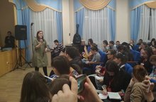 С 26 ноября по 5 декабря 2019 года ЦДТ «Галактика» проводит бесплатную образовательную программу по предпринимательству для обучающихся от 14-17 лет. Обучение проходит в рамках реализации национального проекта по поддержке малого и среднего бизнеса «Мой бизнес». На 1 отборочном этапе «3 шага успешного старта» приняли участие более 200 учащихся района и их руководители. Мастер - класс с учащимися провела Закиева Олеся Анатольевна, куратор проекта «Фабрика – Дети» г. Казань. / 2019 елның 26 ноябреннән 5 декабренә кадәр «Галактика» Балалар иҗат үзәге 14-17 яшьлек укучылар өчен эшкуарлык буенча бушлай белем бирү программасын үткәрә. Укулар кече һәм урта бизнеска ярдәм итү буенча илкүләм проектны гамәлгә ашыру кысаларында уза. "Уңышлы стартның 3 адымы» ның беренче сайлап алу этабында районыбызның 200 дән артык укучысы һәм аларның җитәкчеләре катнашты. Укучылар белән мастер-классны «Фабрика – Балалар» проектының кураторы Казаннан Зәкиева Олеся Анатольевна үткәрде.