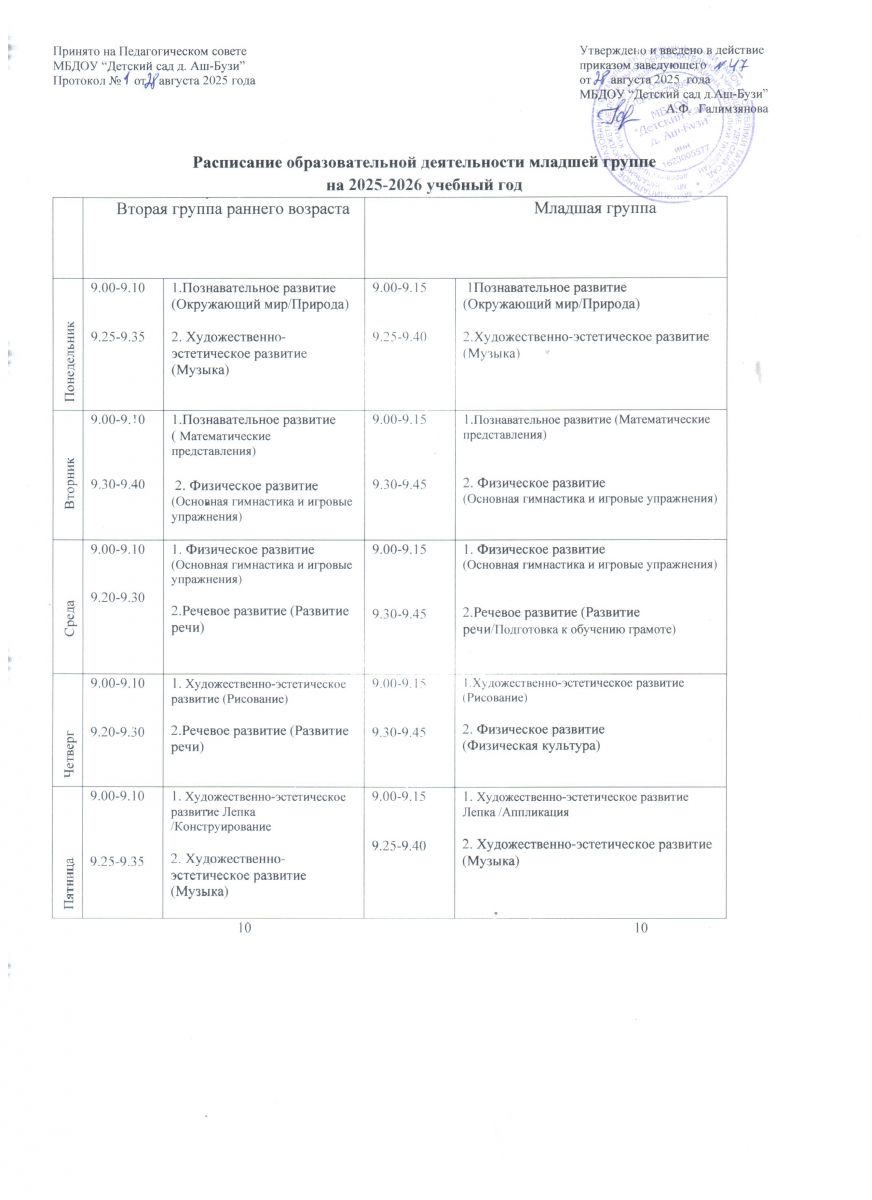 - Расписание образовательной деятельности на 2025-2026 уч.год(младшая разновозр)