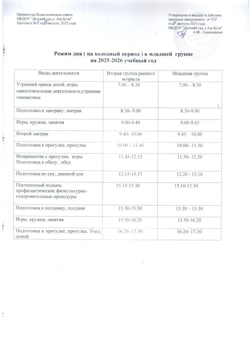 - Режим дня на холодный период 2025-2026 уч.год(младшая разновозр)
