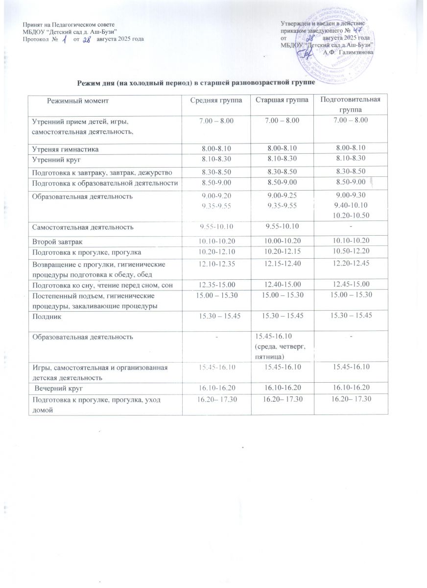 - Режим дня на холодный период 2025-2026 уч.год(старшая разновозр)