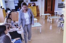 Сегодня к нам пришли школьники с организации "Движения первых". Они научили детей танцевать флешмоб "Движения первых". Показали интересную театральную постановку.