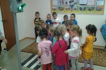 Сегодня малыши средней группы впервые пришли в автокласс. Они увидели в нем настоящий светофор, который даже мигал им своими тремя глазами. Малыши внимательно следили за сигналами светофора и старались правильно переходить через пешеходный переход.