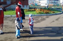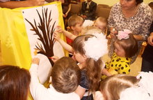 Сегодня в нашем детском саду праздновали праздник осени и день пожилых людей. Дети отправились в веселое путешествие на паровозике в осенний лес. Малыши встретились в лесу с Осенью и зайчиком. Они также прочитали для них стихи, угадывали загадки, пели песни, топали по лужам. Бабушки наших воспитанников соревновались в конкурсах, получили подарки от внучат. На память о мероприятии, дети заклеили ,подготовленный заранее, ствол дерева и дерево зацвело разноцветными листочками.