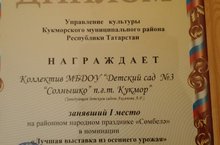 29 августа 2015года перед парком Победы в нашем поселке проводился конкурс "Праздник цветов"- конкурс цветочных композиций, посвященных юбилею Кукморского района. Наш детский сад принял активгное участие на этом конкурсе и занял 1 место.