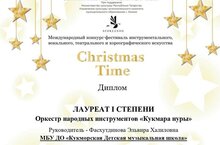 Преподаватели Кукморской Детской музыкальной школы - оркестр народных инструментов "КУКМАРА НУРЫ" приняли участие в Международном конкурсе-фестивале инструментального, вокального, театрального и хореографического искусства "Christmas Time" и удостоился звания Лауреата 1 степени!!!! Поздравляем!!!
