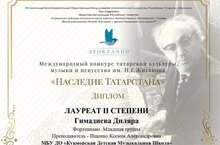 Поздравляем призера Международного конкурса татарской культуры, музыки и искусства им.Н.Г.Жиганова "НАСЛЕДИЕ ТАТАРСТАНА" , прошедшего 19 апреля в г.Казань.