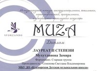 Поздравляем победителей Международного конкурса инструментального, вокального, театрального и хореографического искусства «MUZA», который прошел в г.Казань. Ученица Мухутдинова Замира - фортепиано (преподаватель Семенова С.В.) удостоилась звания Лауреата 2 степени, Валеева Диляра - вокал (преподаватель Шаймарданова З.К.) - Лауреата 2 степени!!!
