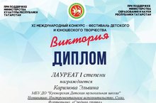 1 марта и 15 марта 2020г. учащиеся Кукморской детской музыкальной школы Валеева Диляра и Михайлова Эльза под руководством преподавателя Шаймардановой З.К. приняли участие в Открытом Республиканском конкурсе вокального искусства «Музыкальный звездопад», прошедшего в г.Набережные Челны. Проходил конкурс в 2 тура. По результатам конкурса Валеева Диляра - лауреат 3 степени, Михайлова Эльза - Дипломант 2 степени! Поздравляем с успешным выступлением!
