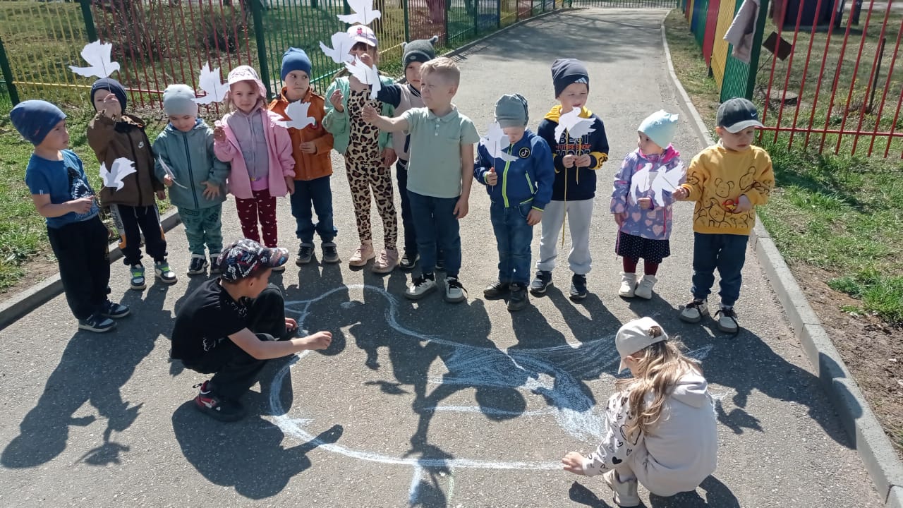 Безнең мәктәпкәчә белем бирү төркемендә, 26 апрель көнне, Бөек Ватан сугышында Җиңүнең 80 еллыгын бәйрәм итүгә багышланган «Тынычлык күгәрчене - Җиңү күгәрчене» акциясе узды.