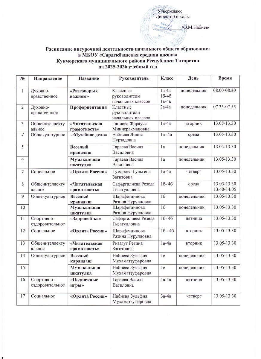 Расписание занятий внеурочной деятельности на 2025-2026 учебный год
