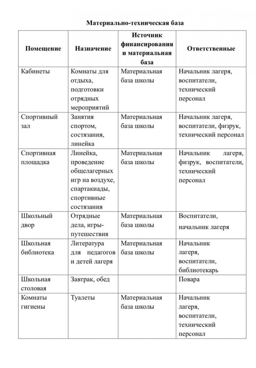 Материально-техническое обеспечение и оснащенность организации отдыха детей и их оздоровления