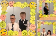 В начальной школе расцвела яркая фото-зона! Каждый ученик мог сделать незабываемое фото в рамке из улыбающихся смайликов.