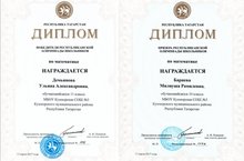 Поздравляем победителя республиканской олимпиады школьников по математике Демьянову Ульяну (учитель Гилязева М.М.) и призера Бариеву Миляушу (учитель Гилязева М.М.) с победой. Желаем им дальнейших творческих успехов!