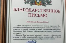 Распоряжением Главы Кукморского муниципального района за высокие спортивные показатели, занятое II командное место среди районов в Первенстве Республики Татарстан по лыжным гонкам «Надежды Татарстана» среди юношей и девушек 2012-2013 годов рождения награждаются: